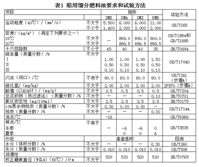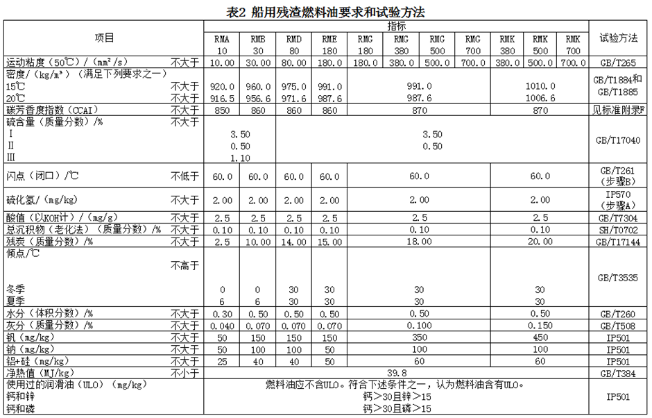 我国现行船用燃料油国家标准GB17411-2015是按照国际标准ISO8217执行的,是强制性国家标准。根据我国国家标准规定,船用燃料油分为三类产品,一是馏分型船用燃料油,二是残渣型船用燃料油,三是内河船用燃料油。