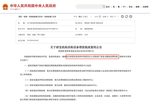 政府不仅从自身采购下手,财政部、商务部、税务总局三部委联合发文《关于研发机构采购设备增值税政策