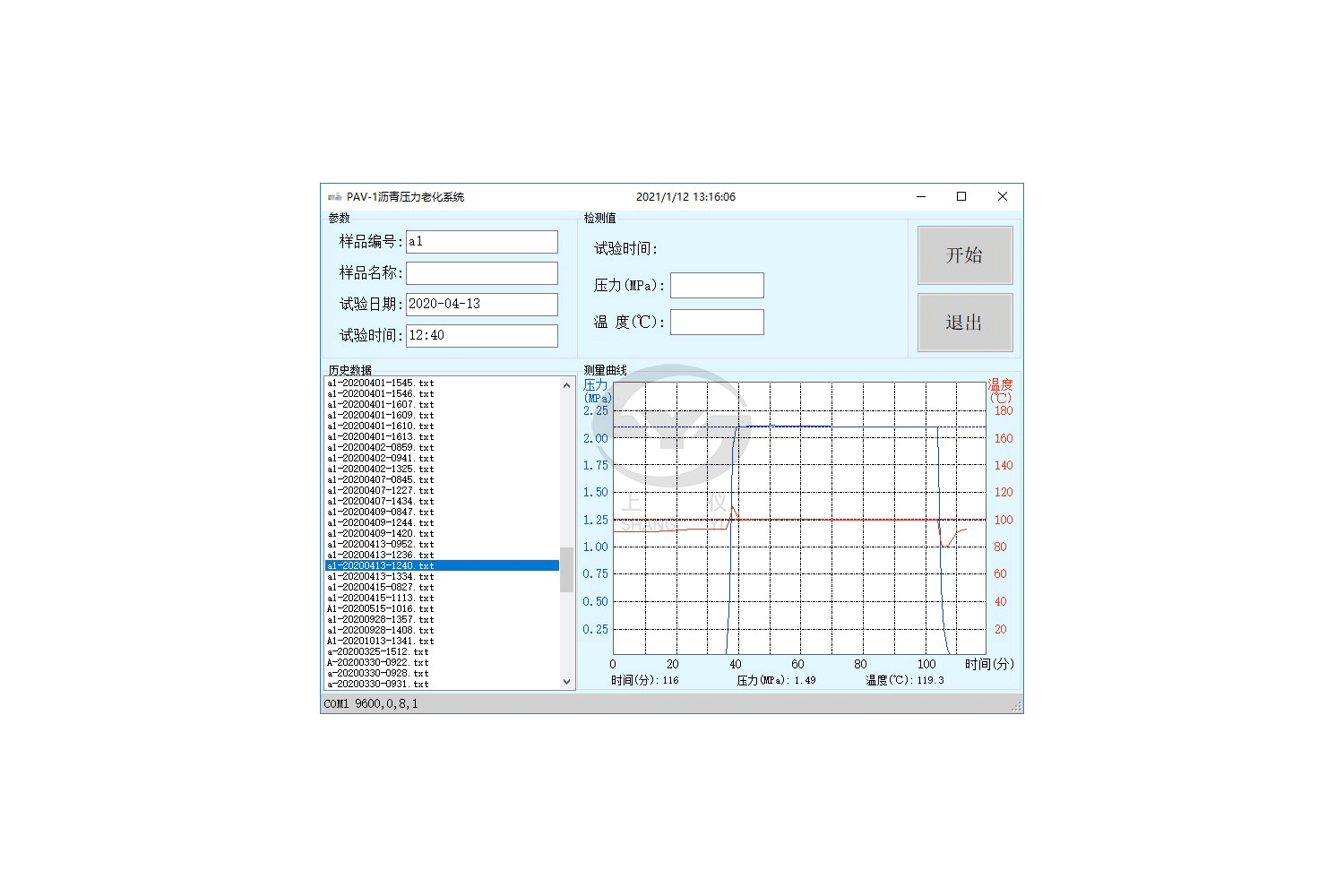 3.实时监控腔体内压力和温度,显示工作过程中腔体内温度-时间和压力-时间曲线;
